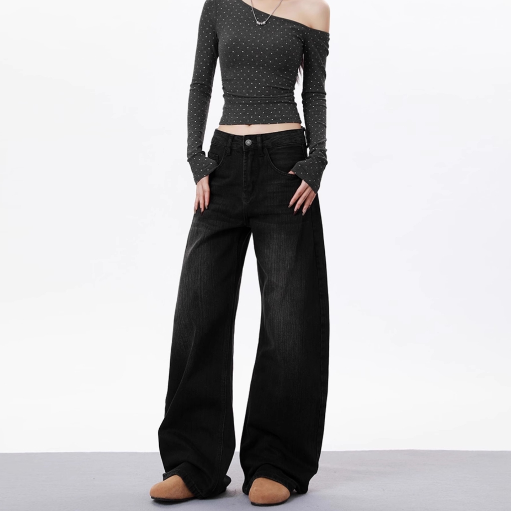 boll.id | Baggy Celana Jeans Wanita Hitam Highwaist Model Wide-Leg - Gaya Santai yang Elegan untuk Penampilan Sehari-har