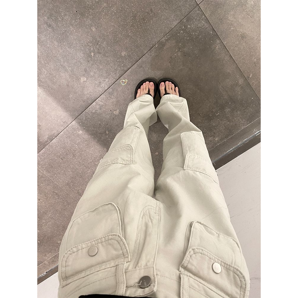 LULU Putih Krem Highwaist Cargo Celana Jeans