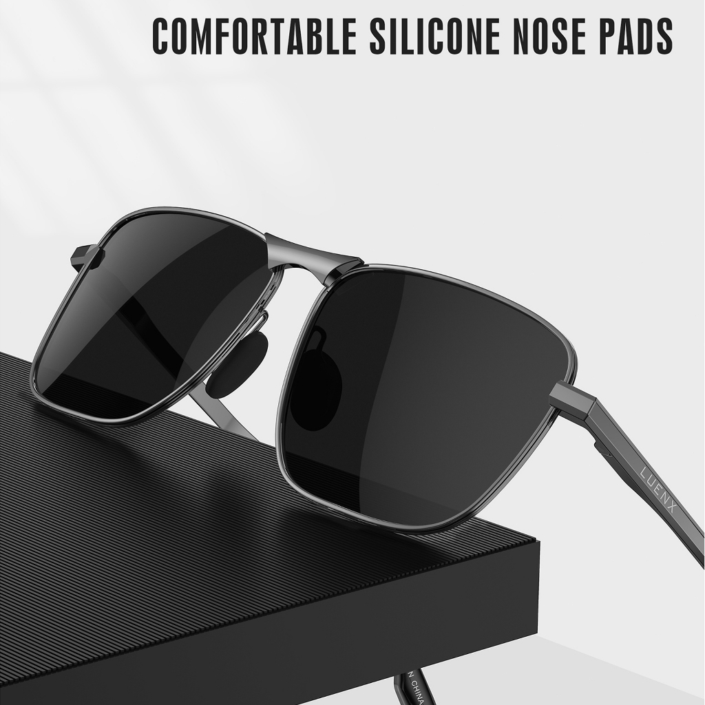 Luenx Kacamata Hitam Rectangular Polarized Aviator Sunglasses Unisex Retro Pilot Shades Driving UV400 Protection 6405-2
