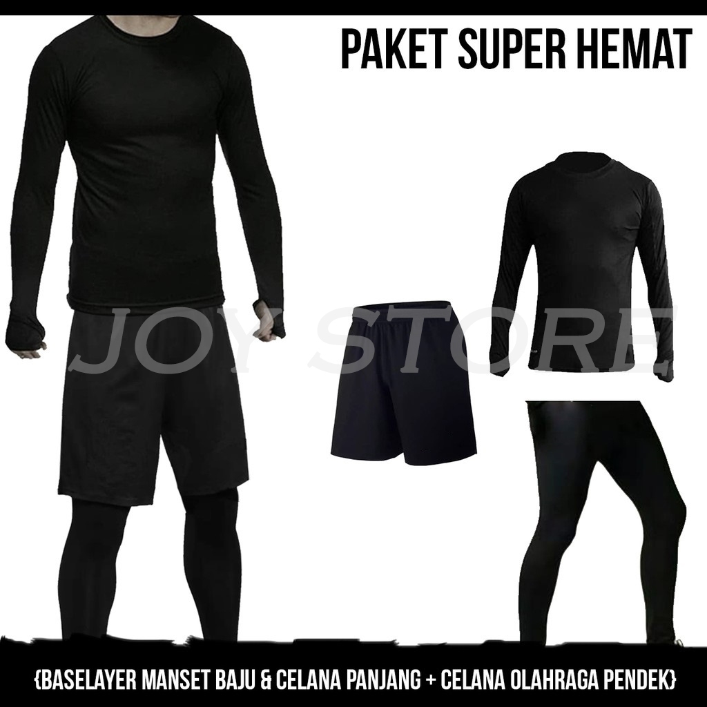 Paket Baselayer Legging Manset Dan Stelan Baju Olahraga Sepakbola Futsal Fitness Pria
