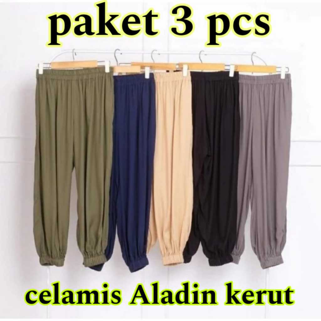 Celana Aladin Panjang Kerut Bawah Wanita Bahan Kaos Promo Isi 3 Pcs Celana Daleman Gamis Wanita Termurah