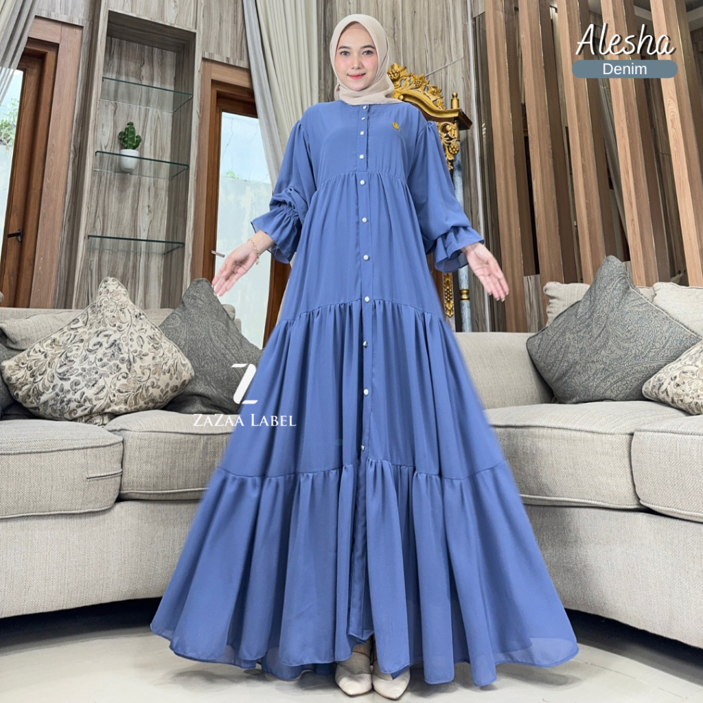 Zazaa Label - Alesha Dress Premium Ceruty Babydoll Jumbo Formal Terlaris Terbaru Termurah Best Seller Gamis Wanita Kekin