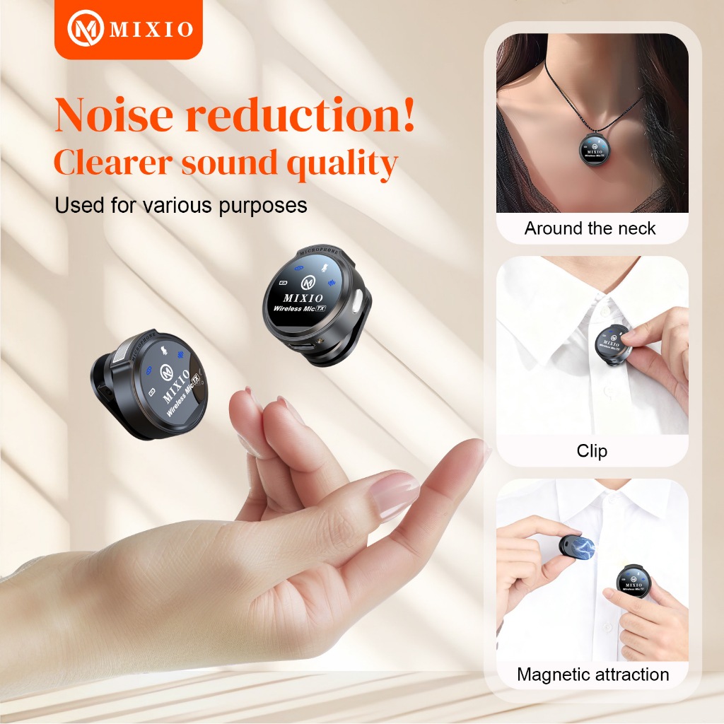 MIXIO T13 Magnetic Wireless Microphone 2-In-1 Clip On Mic Magnetic Mikrofon HP Plug & Play Dual Lavalier Microphone wit