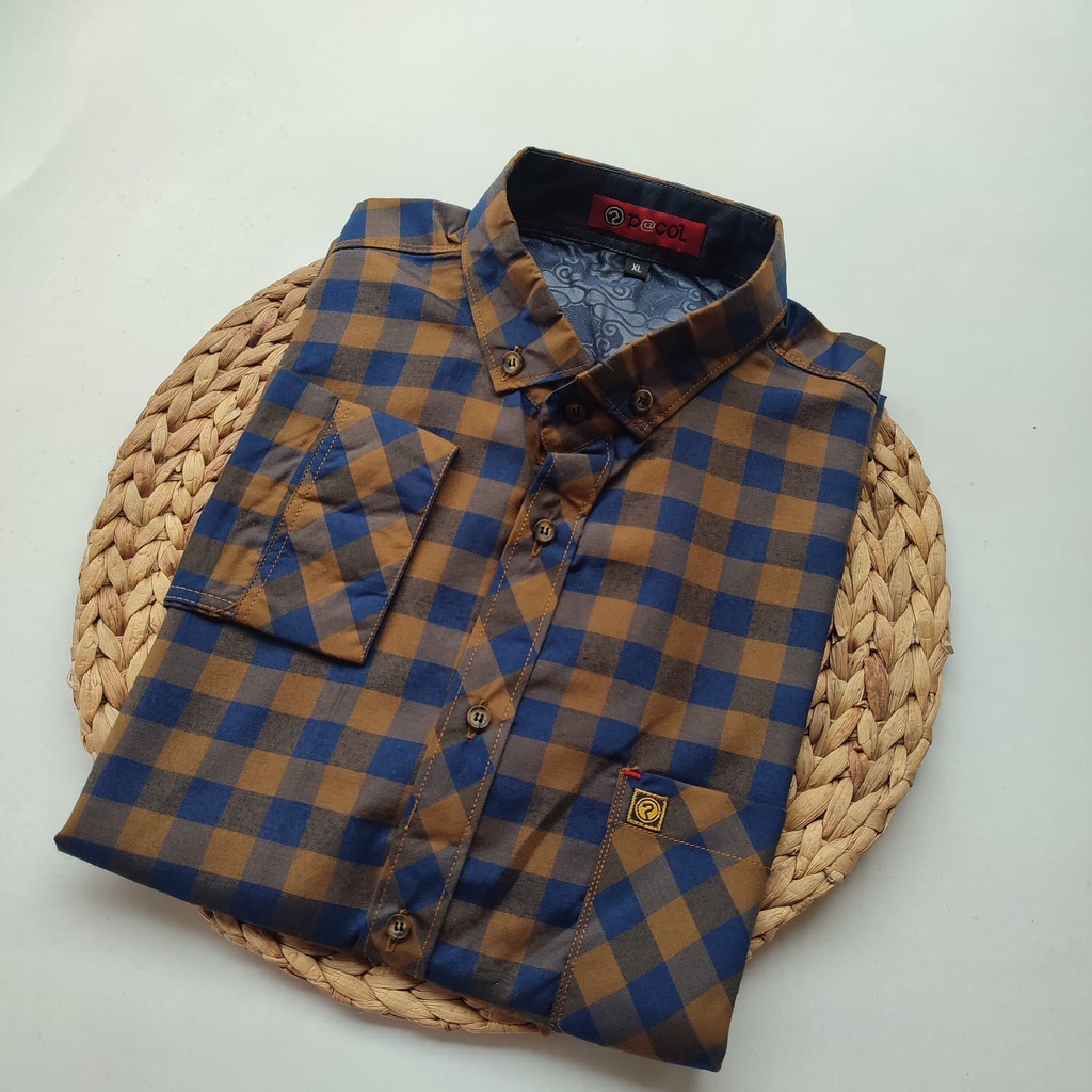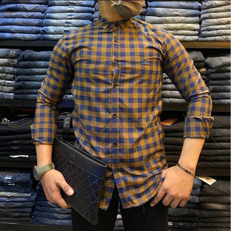 Kemeja Pria Kotak Lengan Panjang Katun Premium