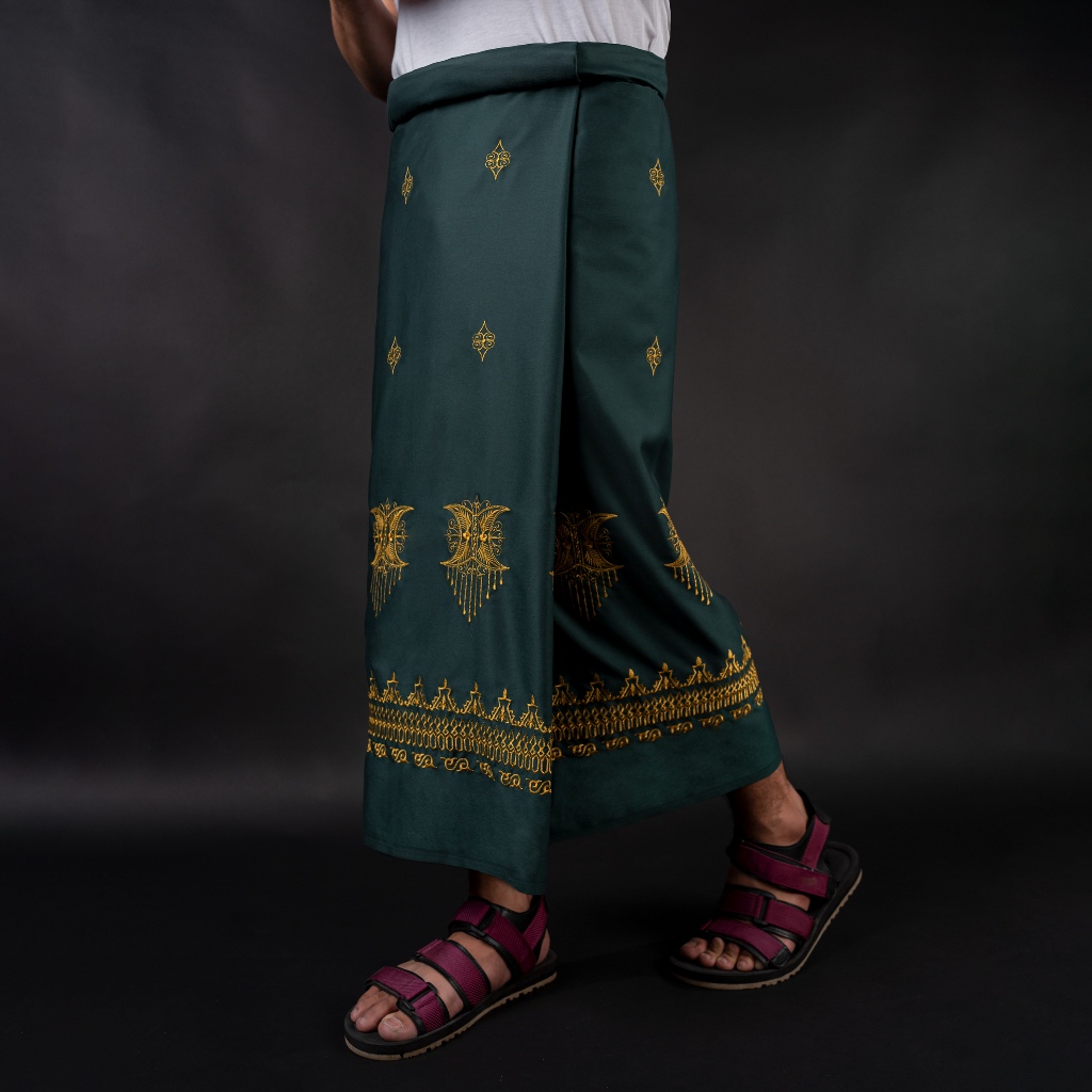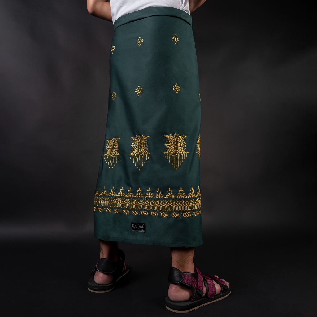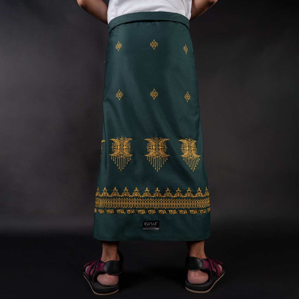 KATSAE Sarung Bordir Motif Pintu Aceh Embroidery Timbul Sarung Pria Dewasa Warna Green Sarung Sholat 100% Bordir Asli