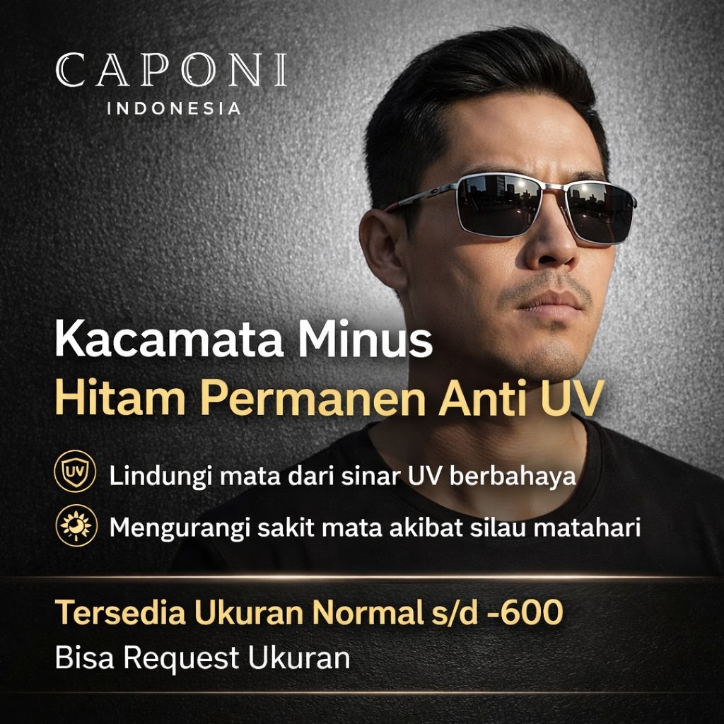 CAPONI Kacamata minus Pria Lensa Hitam Permanen Frame Titanium Tangkai Pegas Anti Silau Outdoor