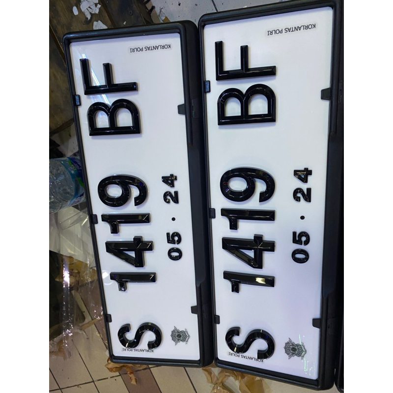 1 pcs plat hitam, 1 set plat putih, 1 set plat hitam, 1 pcs plat putih, 1set Plat putih list, 1set font FE dsr plt, Font FE dsr akrilik, 1set angka hitam, Fe hitam lis kotak, Font FE dasar plat