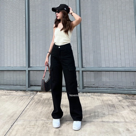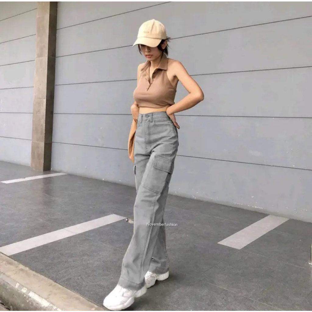 QYUJINS - GREY HW LOOSE CARGO JEANS / ABU ABU CARGO JEANS / CELANA BIGSIZE HW LOOSE JEANS WANITA