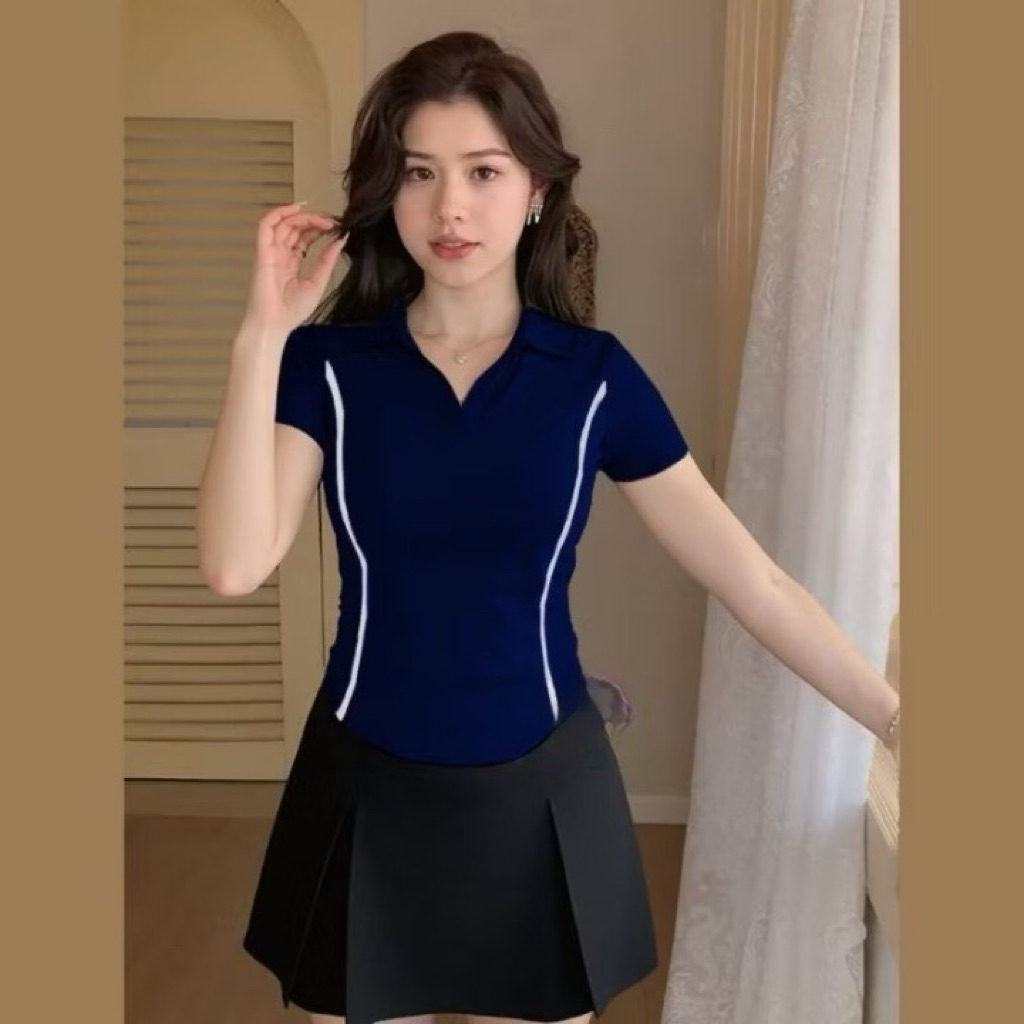 Baju Wanita Fashion Korea F&Y Lexa Crop Top Kerah List Korean Style