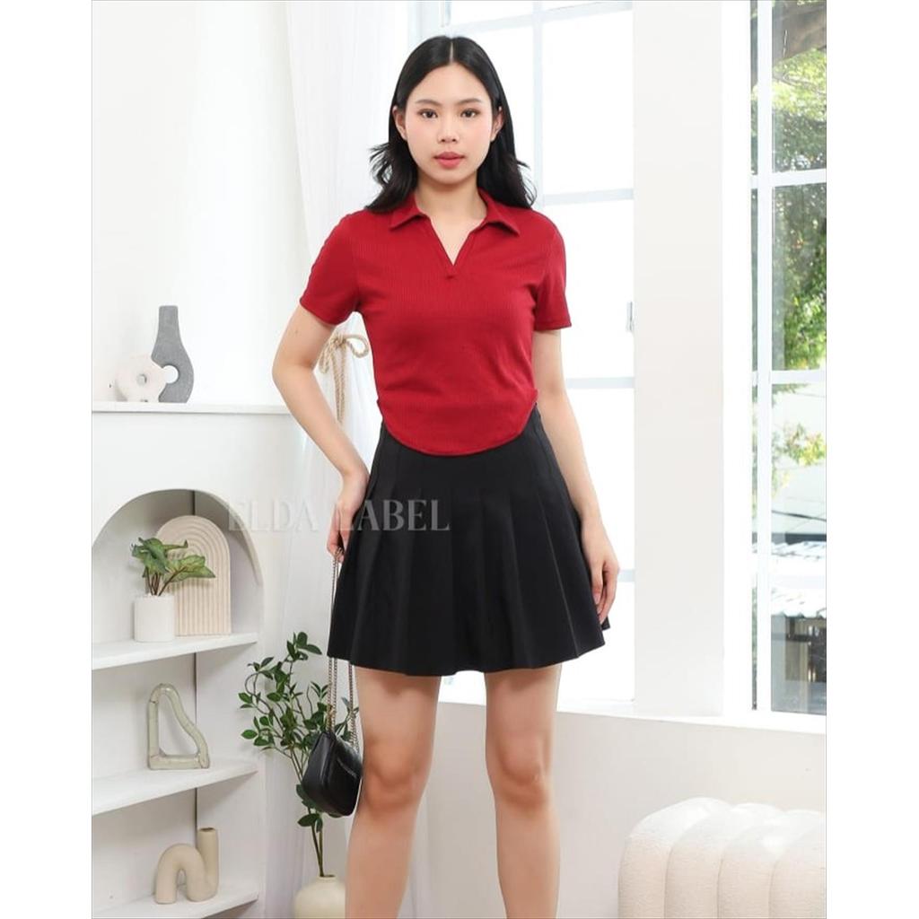 Atasan Crop Top Wanita Lengan Pendek Elda Top V Neck Oval Kekinian