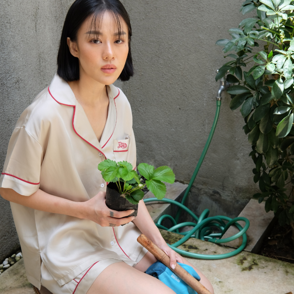 Lazy Pajamas® Tencel™ Silk Pajamas - Light Almond | Piyama | Baju Tidur