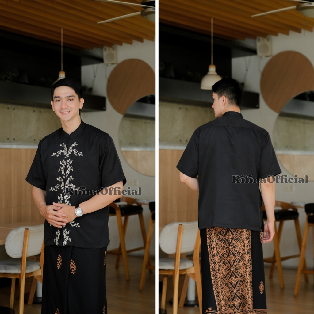 Rifina Setelan Sarung Dan Koko Set SARKO Bordir Bahan Toyobo Pakaian Muslim Pria Terbaru Premium