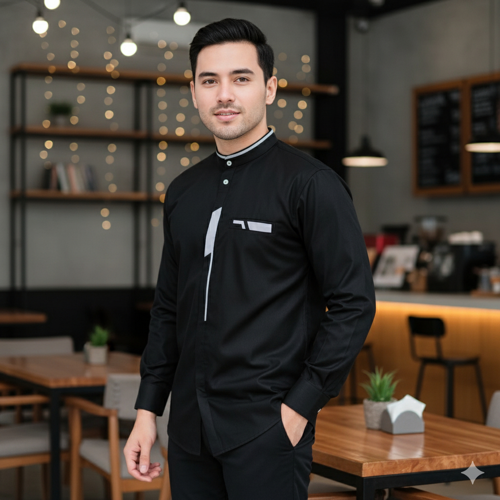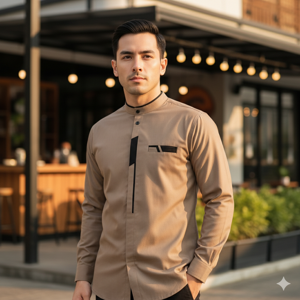 NATAYA Baju Koko Pria Dewasa Lengan Panjang Motif Malvin Warna Cokelat Bahan Katun Toyobo