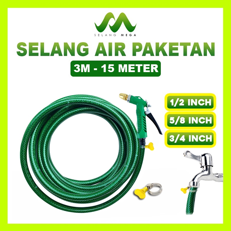 Mega Sepaket Semprotan Selang Air Cuci Motor 15 Meter 1/2 5/8 3/4 Inch Selang Cuci Mobil Siram Tanaman Selang Benang Ant