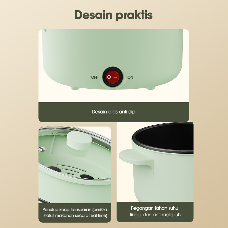 [PROMO] Panci Listrik 1.2L Hijau Anti Lengket Teflon Anti Lengket 600W Irit & Cepat Panas Masak Rebus Kukus Goreng Cocok Anak K