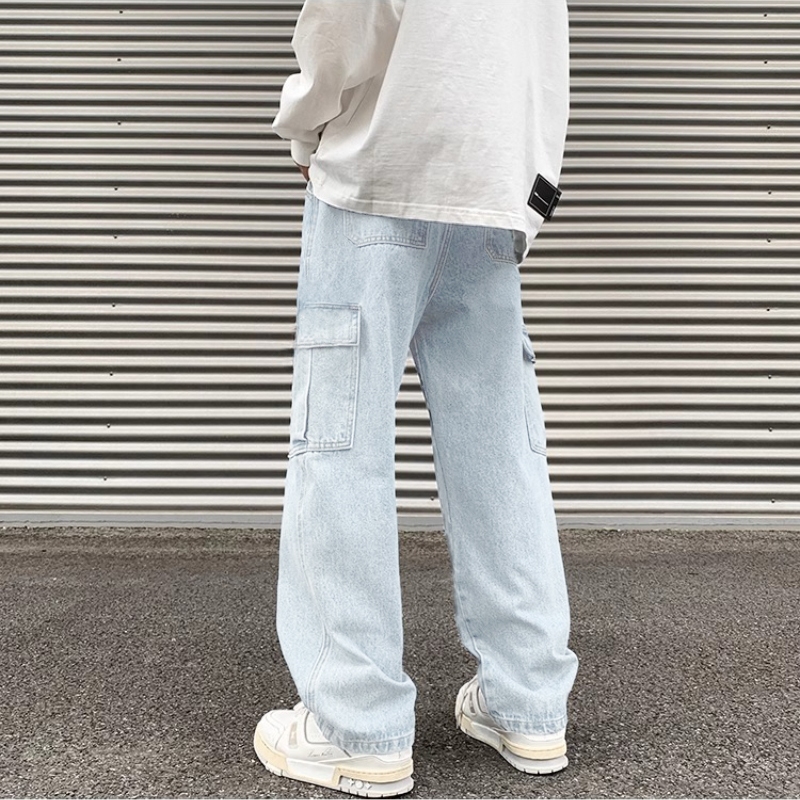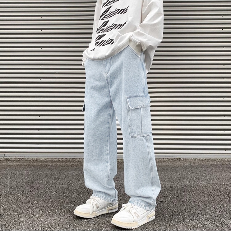 Tamp-X Oversize Baggy Celana Cargo Panjang Pria Jeans Cargo Jumbo Santai Korean Style Biru muda Hitam Biru Abu Straight
