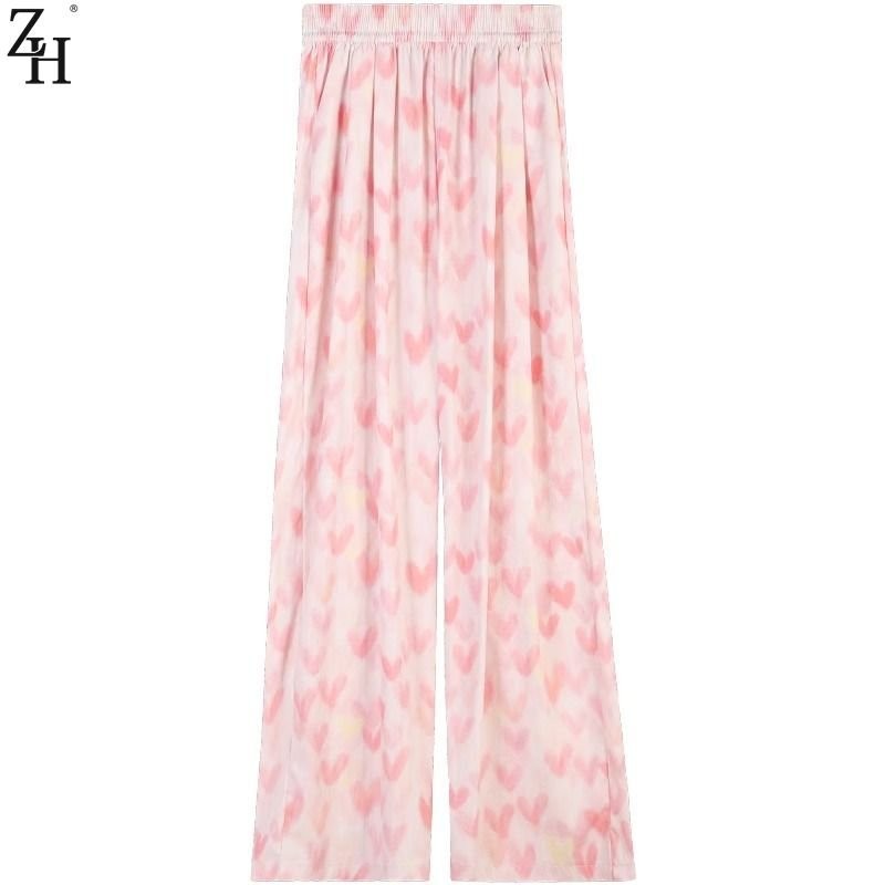 #Sisjuly# Celana panjang wanita/celana kasual berpinggang tinggi berwarna merah muda/celana panjang berkaki