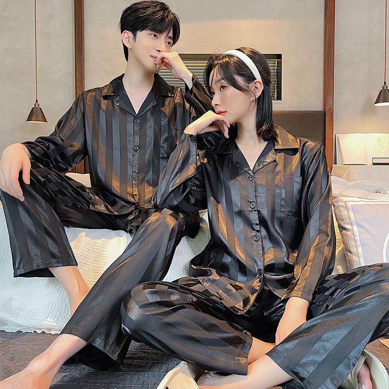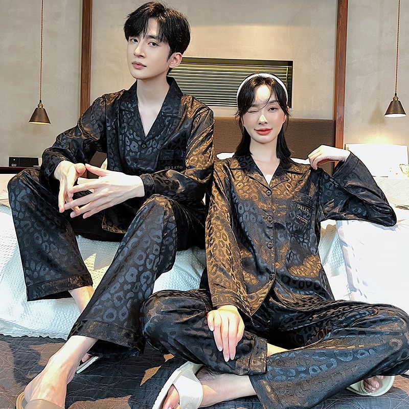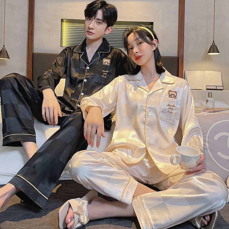 Beli satu dapat satu gratis Piyama pasangan sutra es sutra baru wanita musim semi bagian tipis len