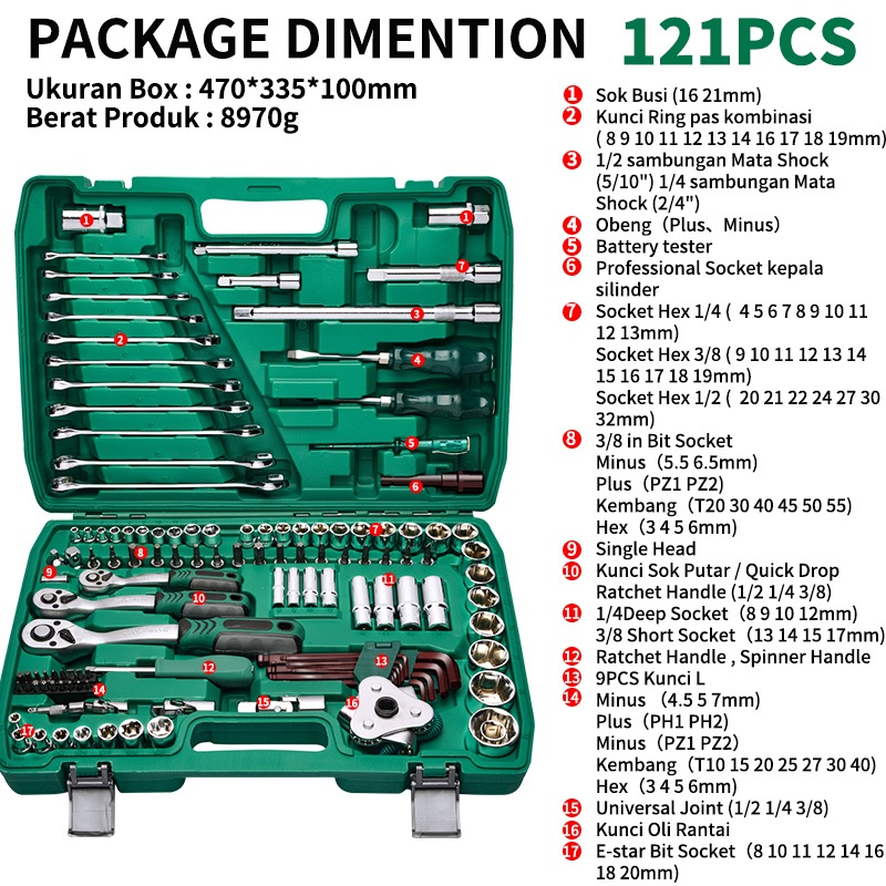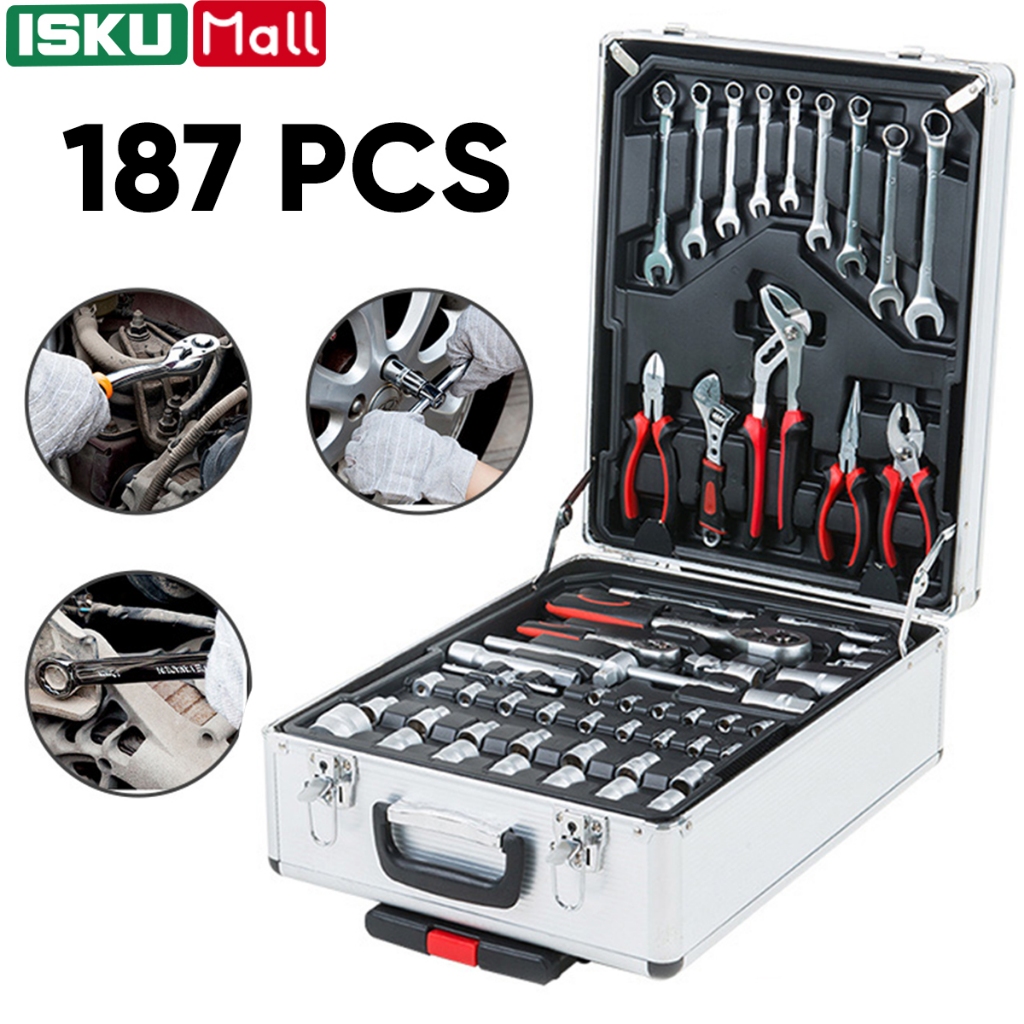 ISKU Tool kit Set alat Kunci Sok set 187pcs/121pcs/82pcs kunci shock set Rumah Koper Alat Bengkel Perkakas Lengkap kunci