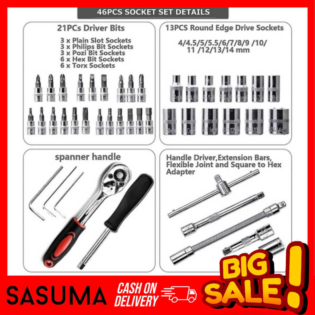 SASUMA Set Kunci Sok Kunci Shock 46 pcs Mobil Motor Lengkap Socket Tool Kit set Pas Ring Motor Mobil