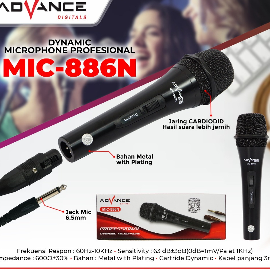 [PROMO] MIC886 Single Profesional Dynamic Microphone Kabel Premium Jack Besar 6.5MM Garansi 1 Tahun