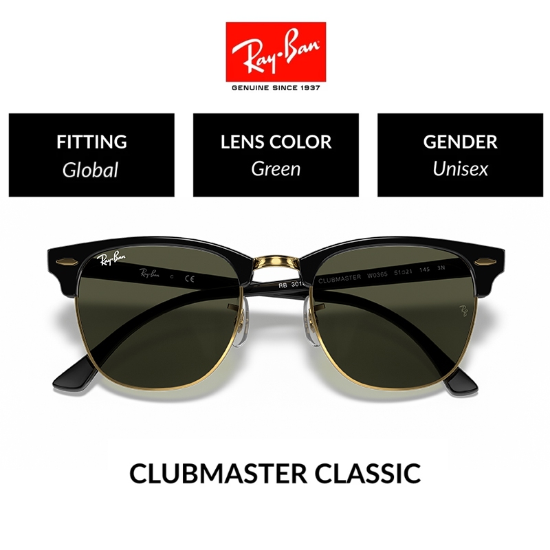 New 100 PERSEN Original Ray-Ban Kacamata Hitam CLUBMASTER RB3016 Sunglasses Black pria wanita Grey