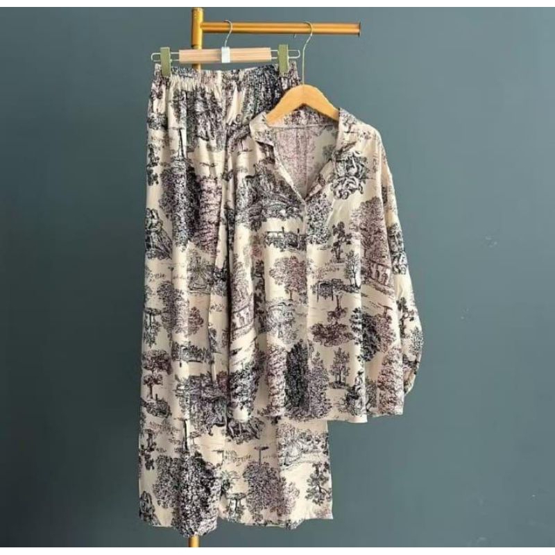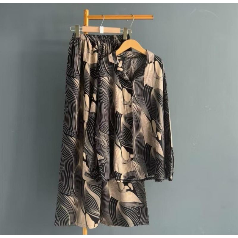 SETELAN KEMEJA CELANA KULLOT/ONESET PIYAMA CELANA MOTIF RAYON PREMIUM
