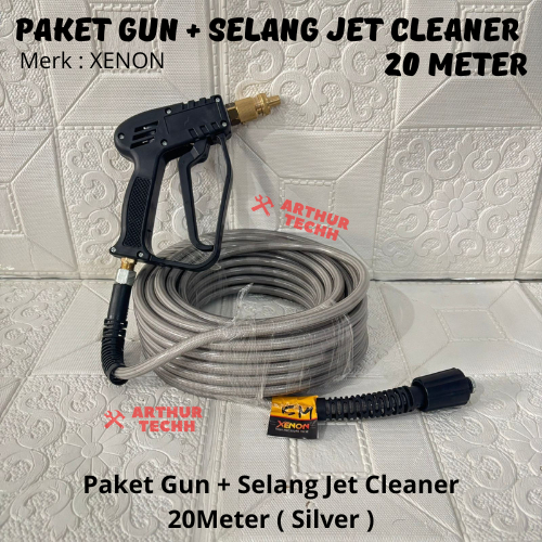 Paket Gun + Selang Xenon Jet Cleaner ( Silver ) M14 - M22 High Pressure Hose 280 Bar 10Meter 15Meter 20Meter 25Meter Gnt