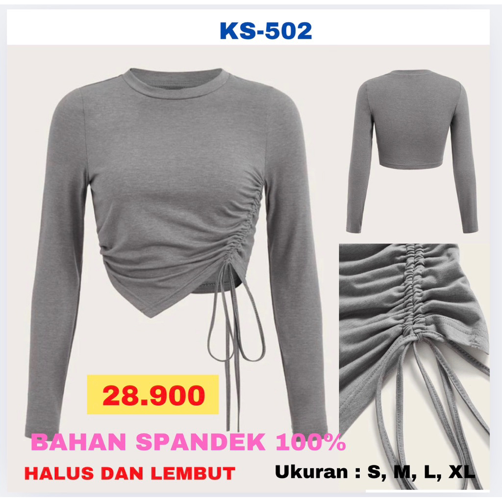 Atasan Croptop Serut Ks-502 Bahan Spandek Korean Baju Wanita