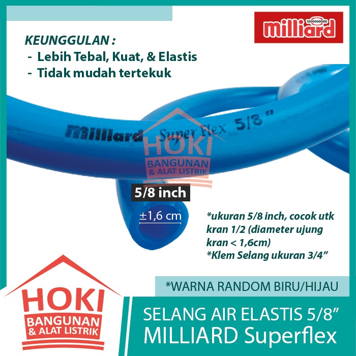 Selang Air 5/8" Milliard Superflex Metalik - Per Roll 5M 10M 15M 20M - Tebal Elastis Lebih Kuat