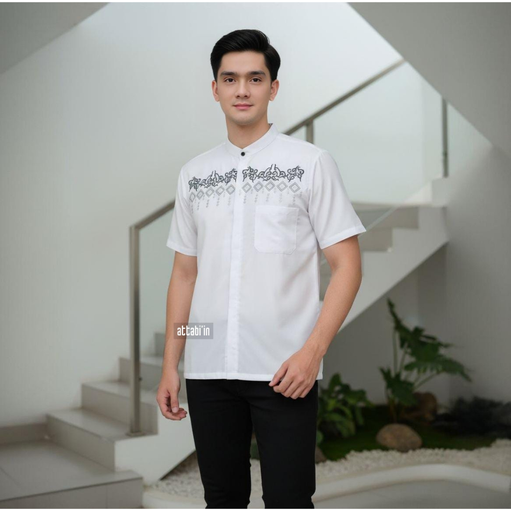 Attabiin Baju Koko Pria Dewasa Bordir – Koko Lengan Pendek Katun Premium Terbaru