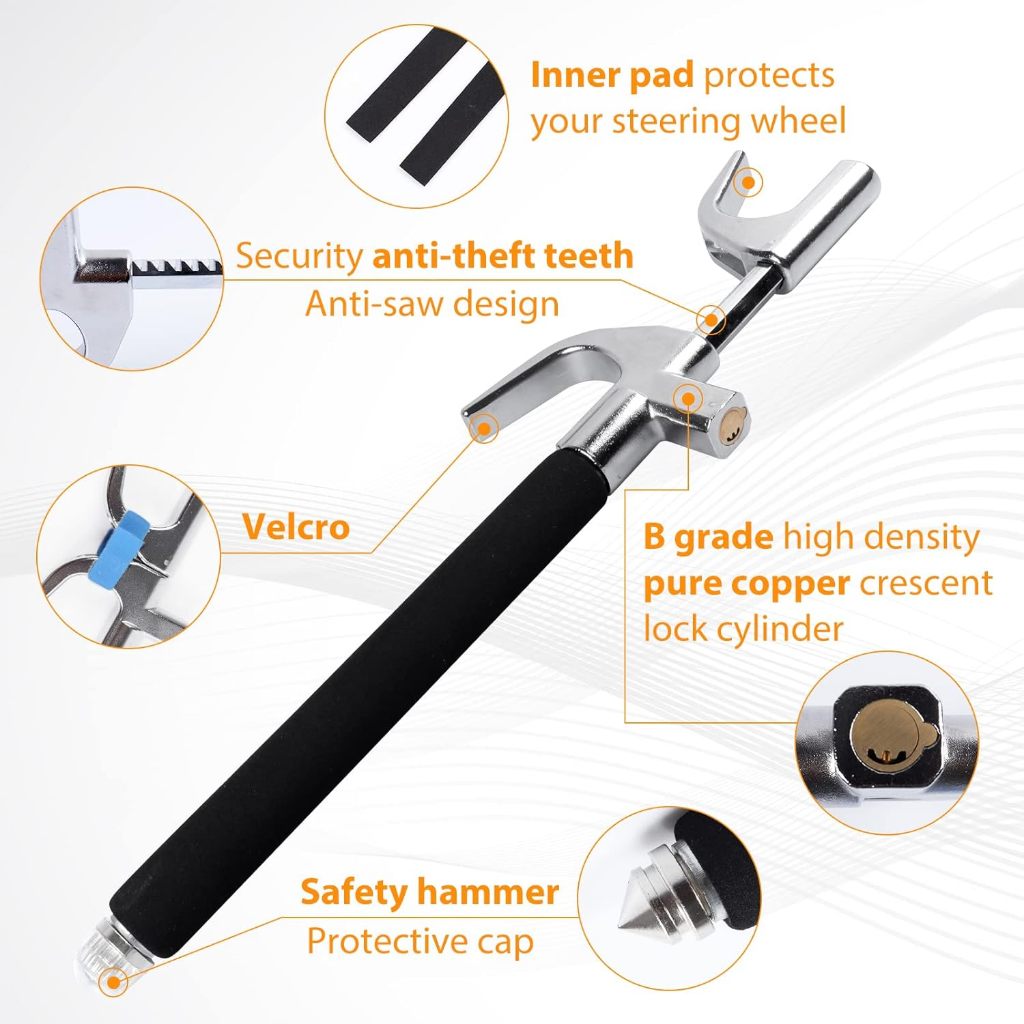 2in1 Pengaman Anti Maling Gembok Mobil Baja Tahan Karat Kunci Foldable Lipat Stir Mobil