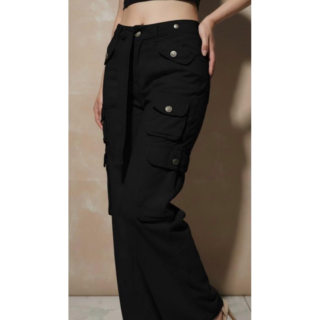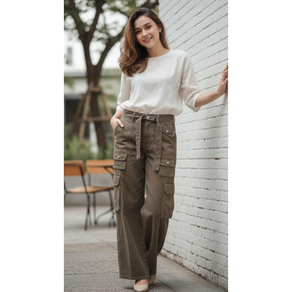 Celana Jeans Wanita Cargo Tali Loose Denim Highwaist Korean Style