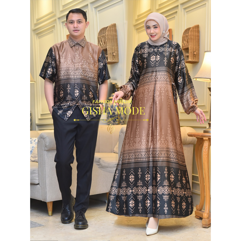 Dress SYAMEERA Silk Premium | Gamis Silk Motif Bunga Set Couple Kemeja Pria Atasan Couple Terbaru Lebaran Pasangan Musli