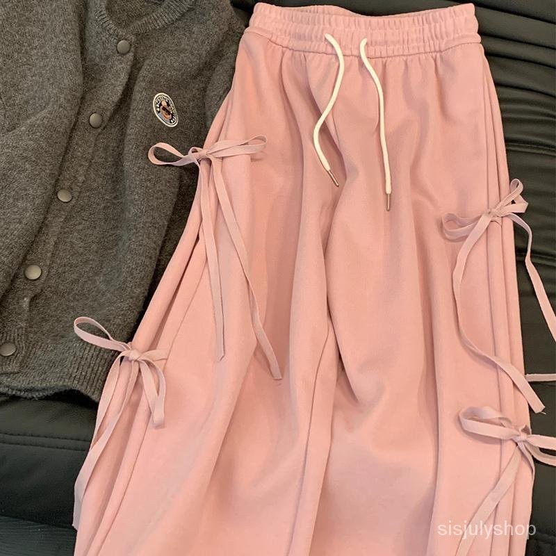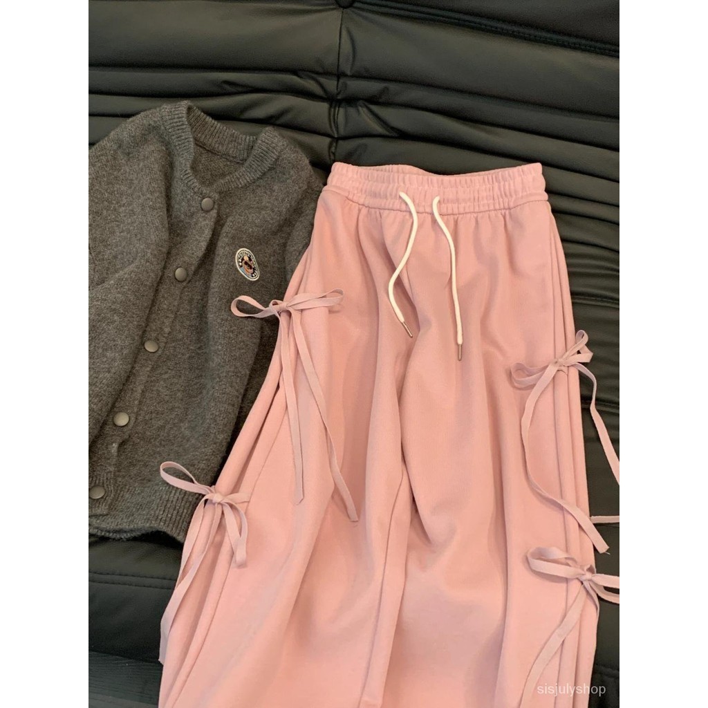 #Sisjuly# Celana panjang wanita / celana panjang kasual berkaki lebar berwarna merah muda / celana panjang l
