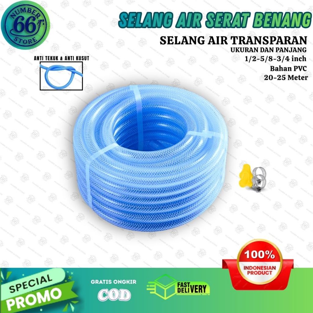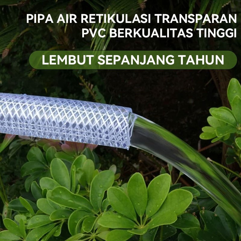 Selang Air Serat Benang Transparant 1/2 5/8 3/4 Inch 20 & 25 Meter 1 Rol Selang Cuci Motor