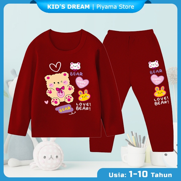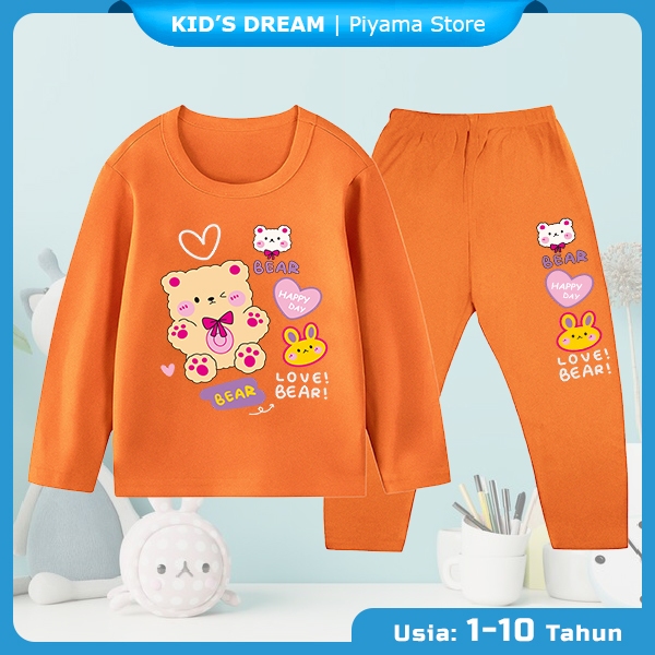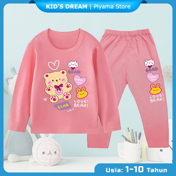 Baju Piyama Anak Motif Beruang Setelan Kaos & Celana Panjang 1 10 Tahun