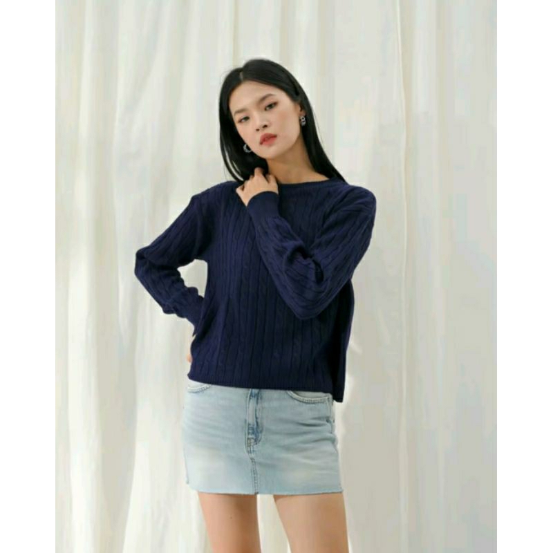 Atasan Rajut Knitwear Wanita Laarein Bianca Cable Sweater