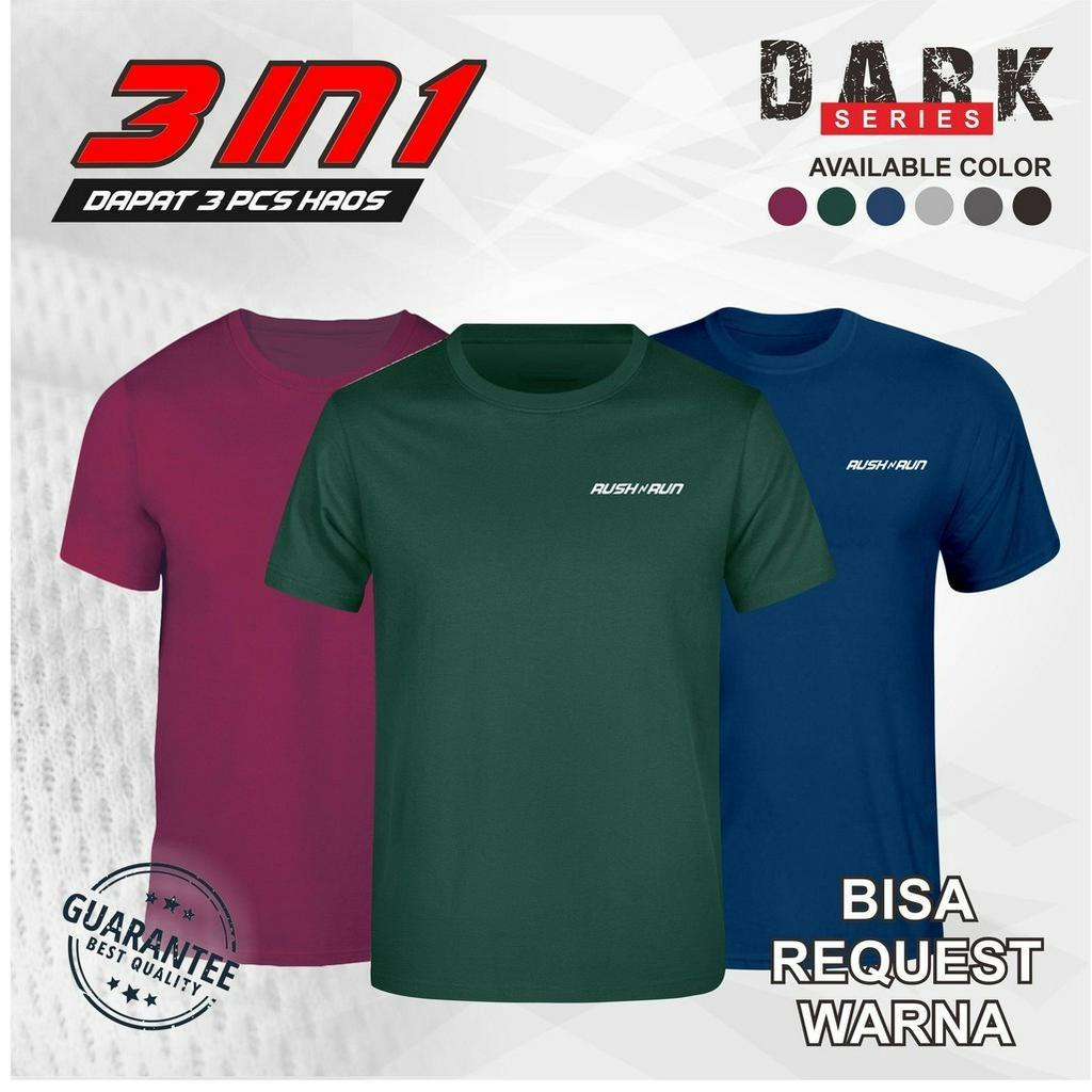 Kaos Olahraga Pria Rush N Run 3 Bahan Dry Fit Lengan Pendek Pakaian Sport Nyaman Menyerap Keringat