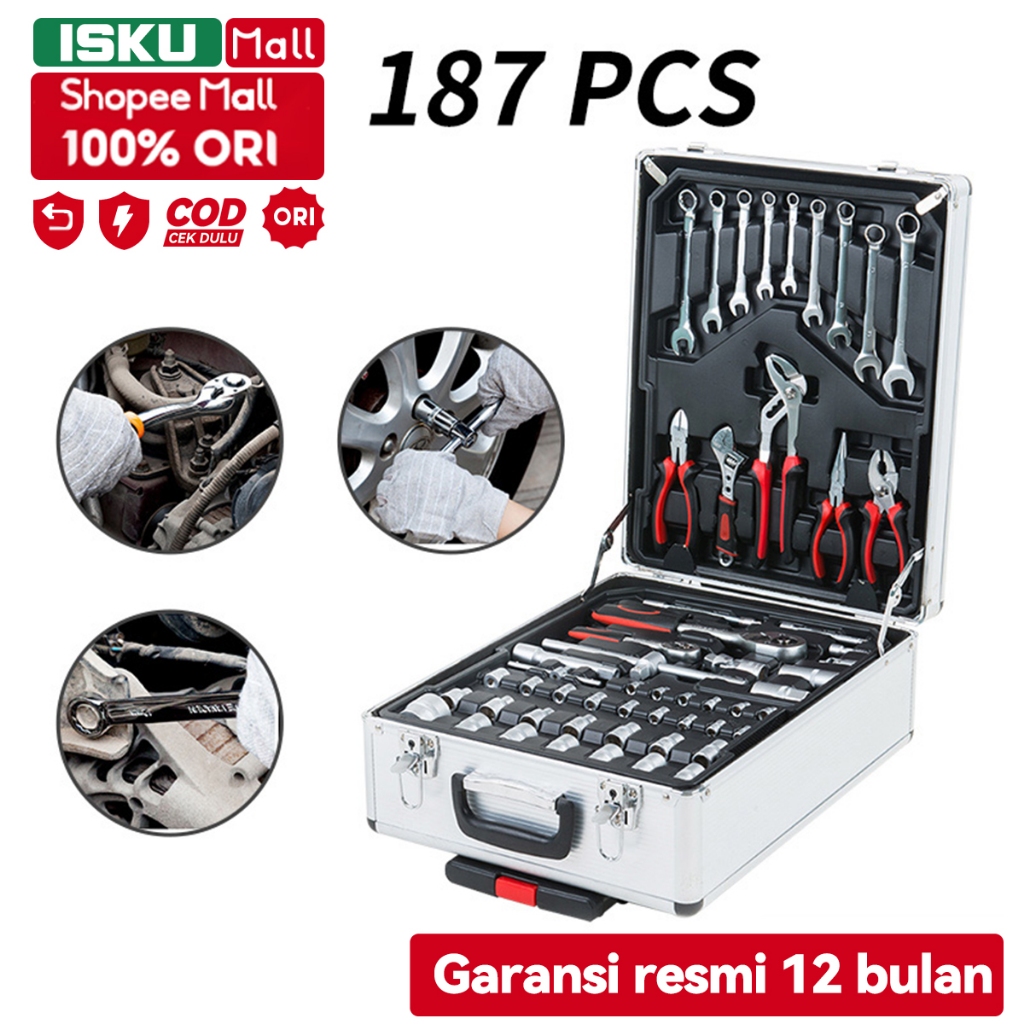 ISKU Tool kit Set alat Kunci Sok set 187pcs/121pcs/82pcs kunci shock set Rumah Koper Alat Bengkel Perkakas Lengkap kunci
