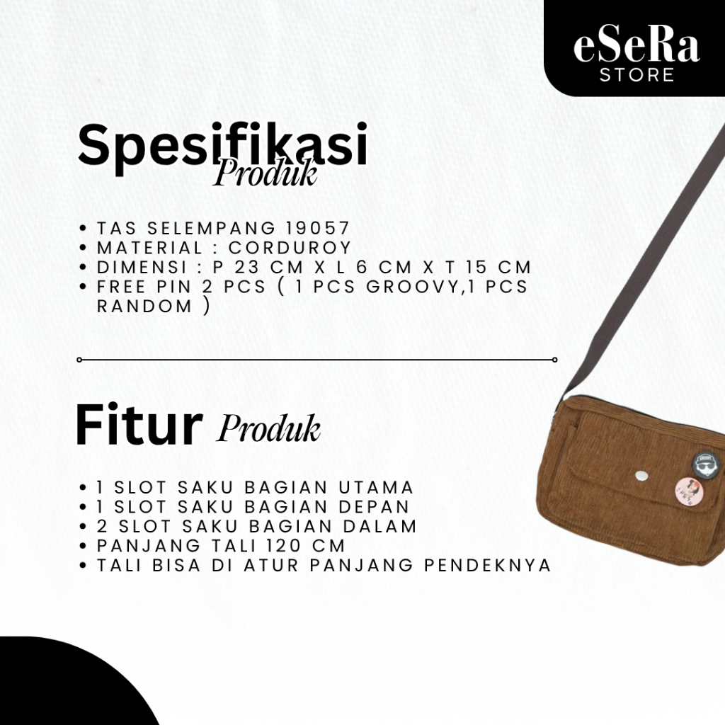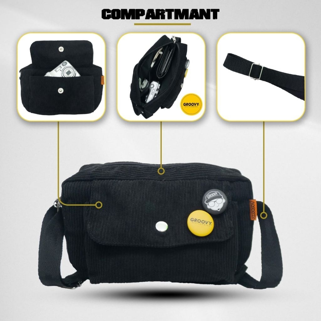 Tas Selempang Pria Wanita Sling Bag Corduroy P 22 x L 8 x T 18 cm Casual Unisex 19057