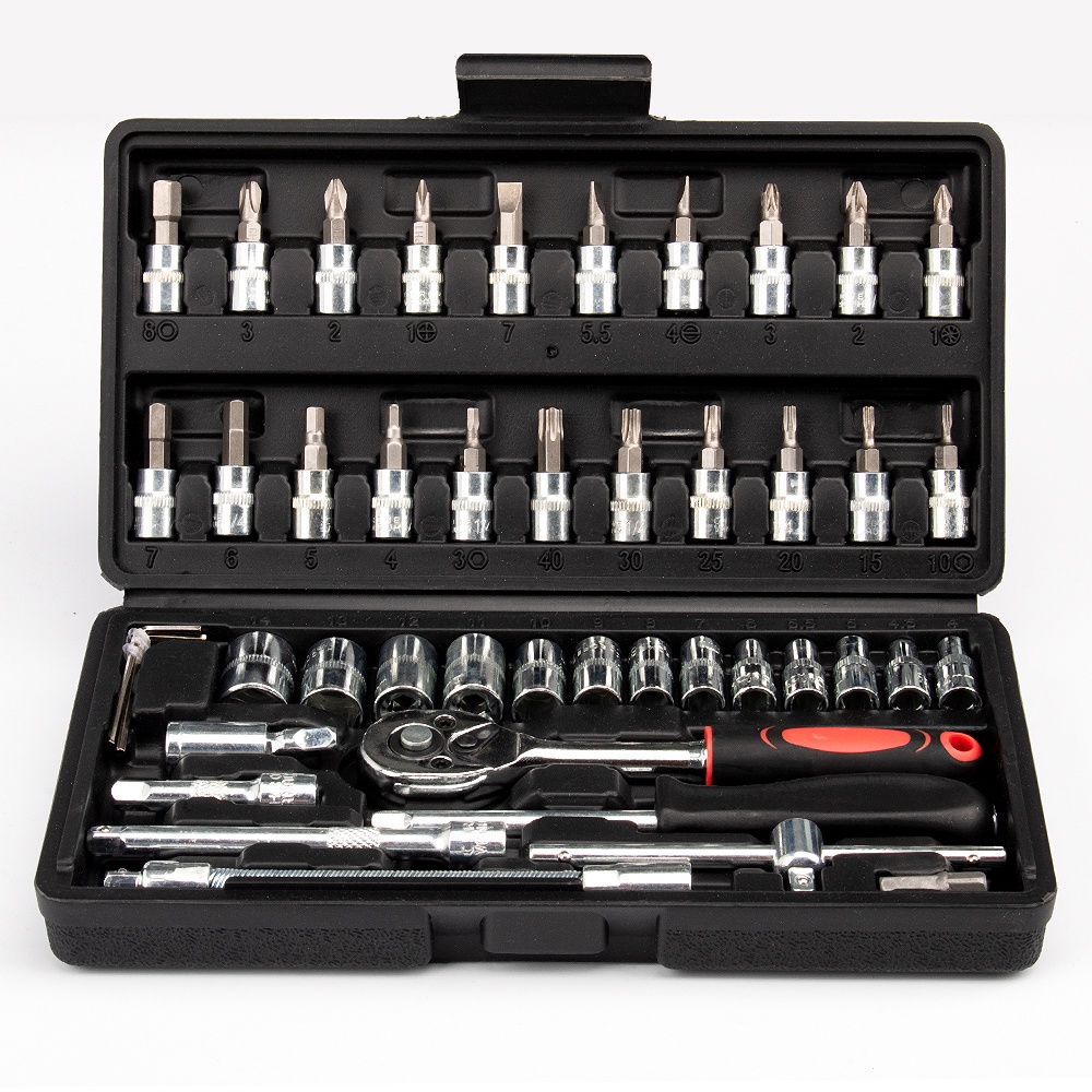 JLD kunci 1set lengkap 46 Pcs kunci shock set 1/4” Kunci Sok Socket Wrench Pas socket Set Mobil Motor Lengkap Socket Too