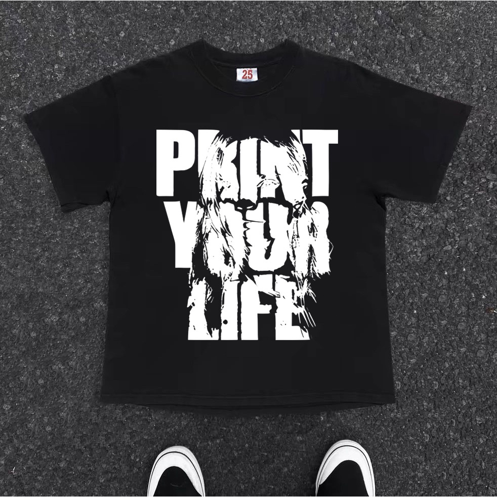BOOMBAP American retro Style T-shirt Oversize PRINT YOUR LIFE| Kaos Wanita Hitam | Kaos pria dan wanita | Street Style 1