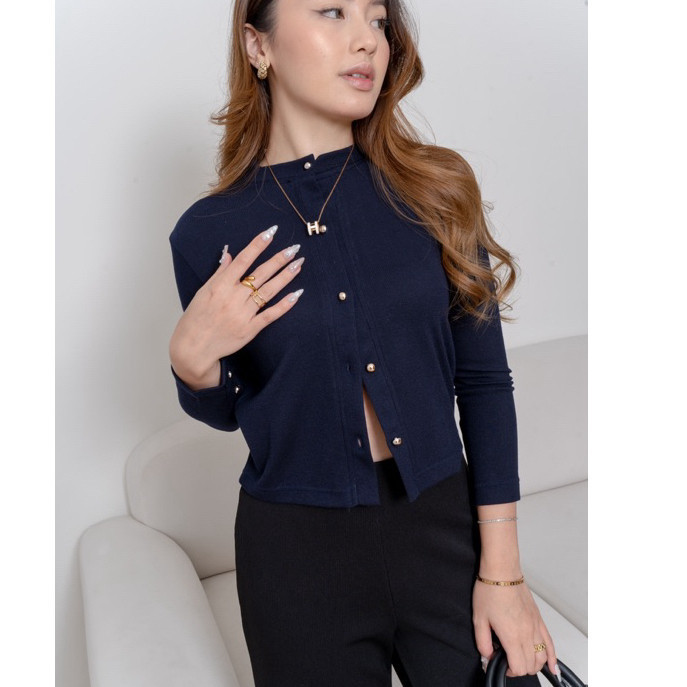 Atasan Wanita Lengan Panjang Aijo Lizzie Cardigan Atasan Kancing Korean Style