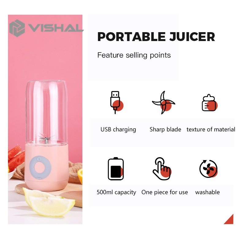 [PROMO] VISHAL Blender Portable Mini Blender Juicer Portable 300ml Juicer Botol Juice Blender Cup USB Electric BlenderJuicer Bl