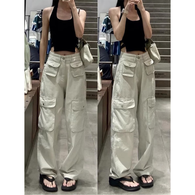 celana cargo pasir putih wanita hightwaist loose celana cargo korea preium
