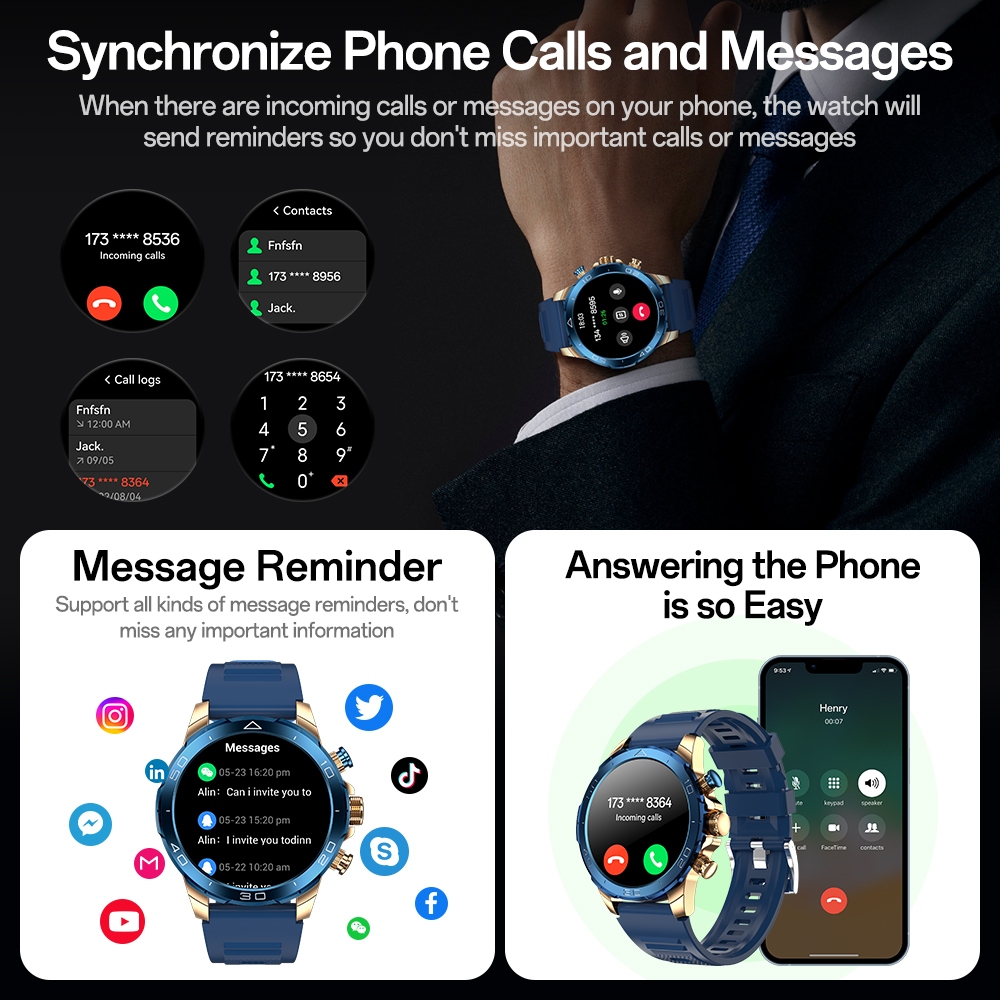 [2026 Baru] Aolon Luxor Jam Tangan Smartwatch Pria Original Bulat Strava | Tombol Kustom 48mm Layar IPS | Luxurious Business Design | 24-hour real-time heart rate Smart Watch GT 6 Tahan air