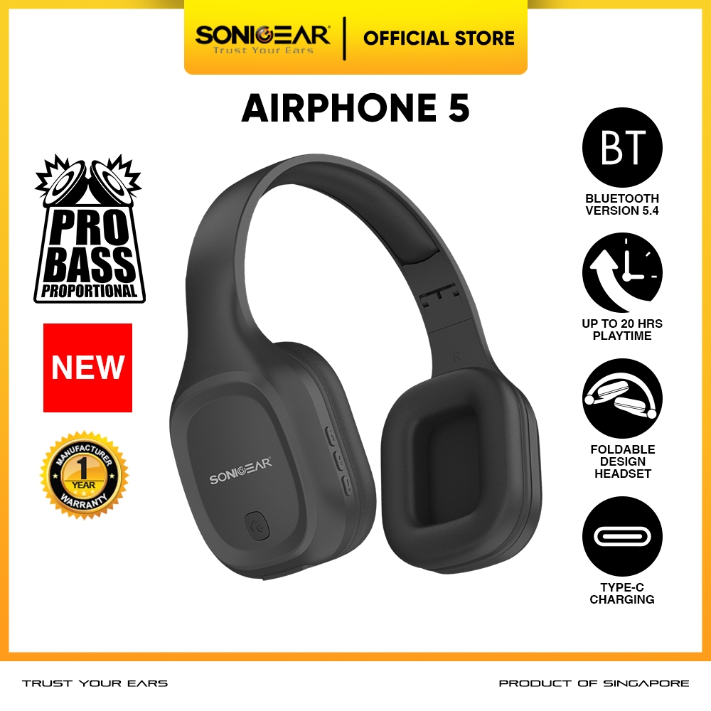 Headphone Wireless Sonicgear Airphone 5 Bluetooth Headphone with Mic | High Clarity and Strong Bass - Rain Drop