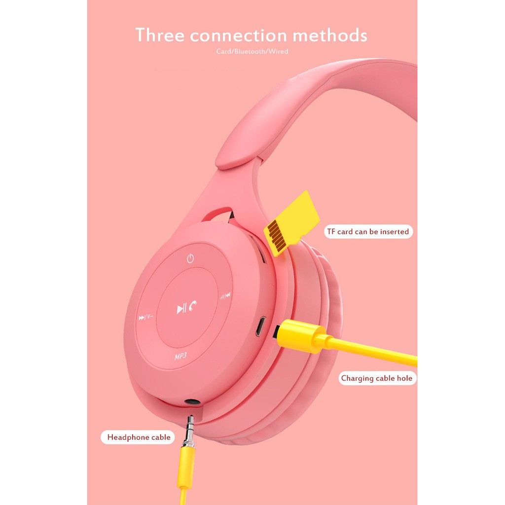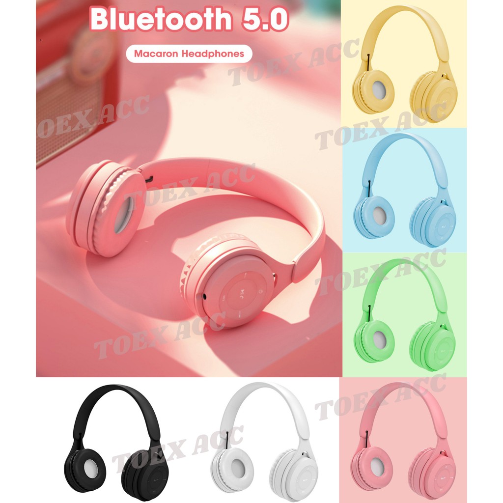 Headphone Gaming Bluetooth + Free Kabel Jack 3.5mm - Headset Wireless Macaron Extra Bass