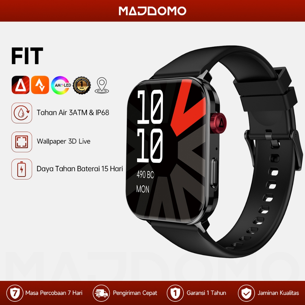 MAJDOMO Jam Tangan SmartWatch 1.95" AMOLED | Tahan Air 3ATM | 100+ Sports Modes | Ai Voice | Bluetooth Calls | AI Watch | Pemantauan Kesehatan | Jam Tangan Olahraga Pintar | Smart Watch Pria Wanita